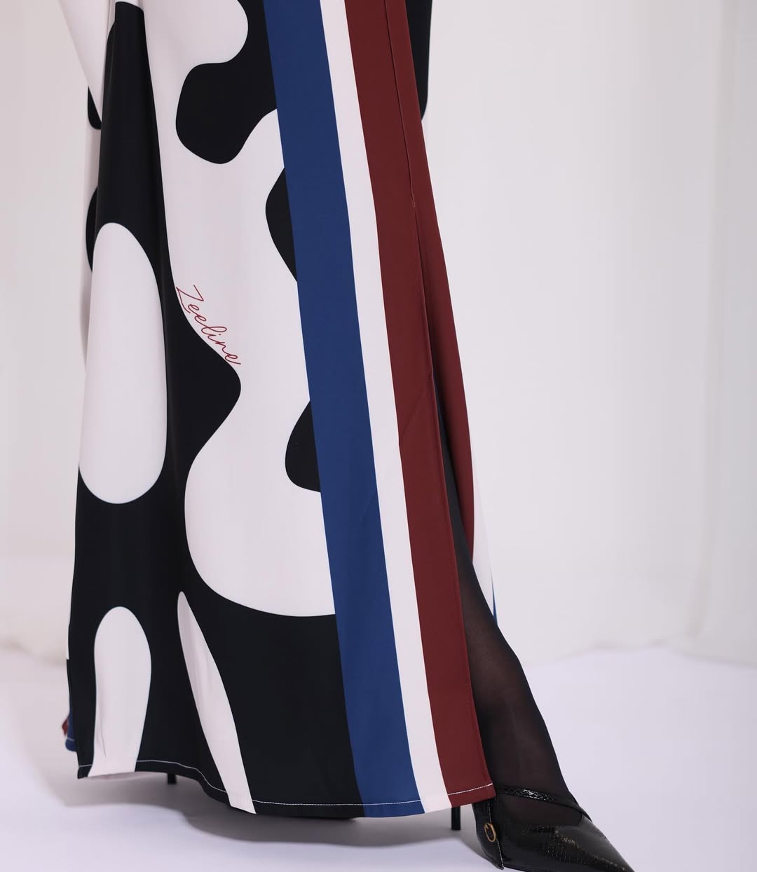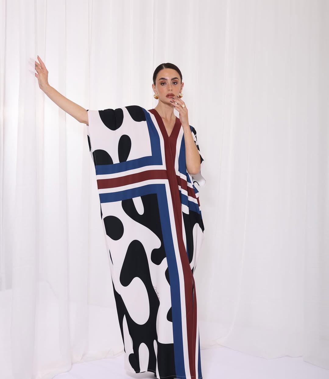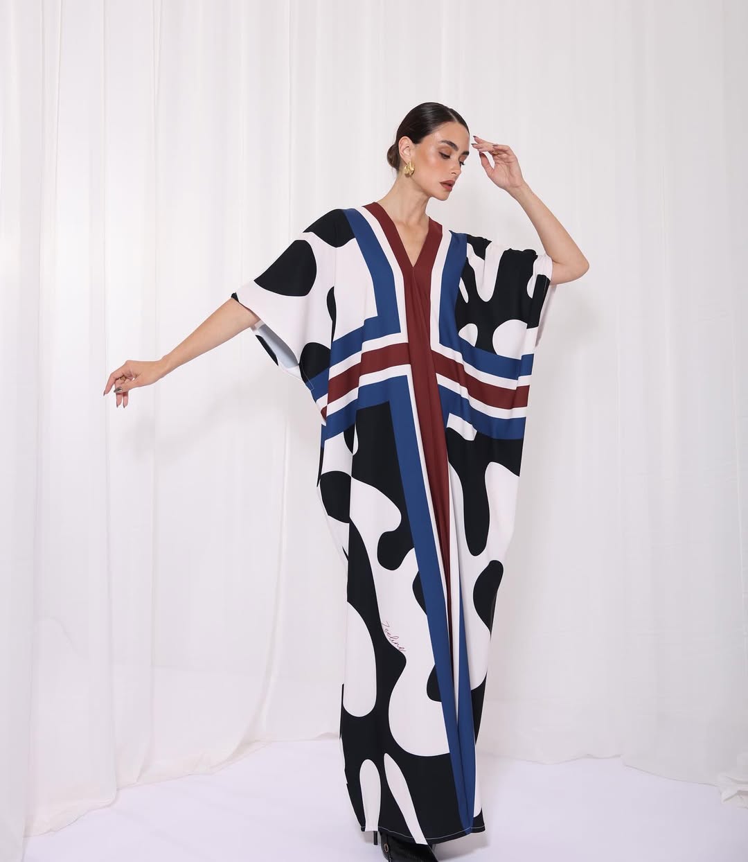 Crepe jalabiya with a custom print, elegant and distinctive design.