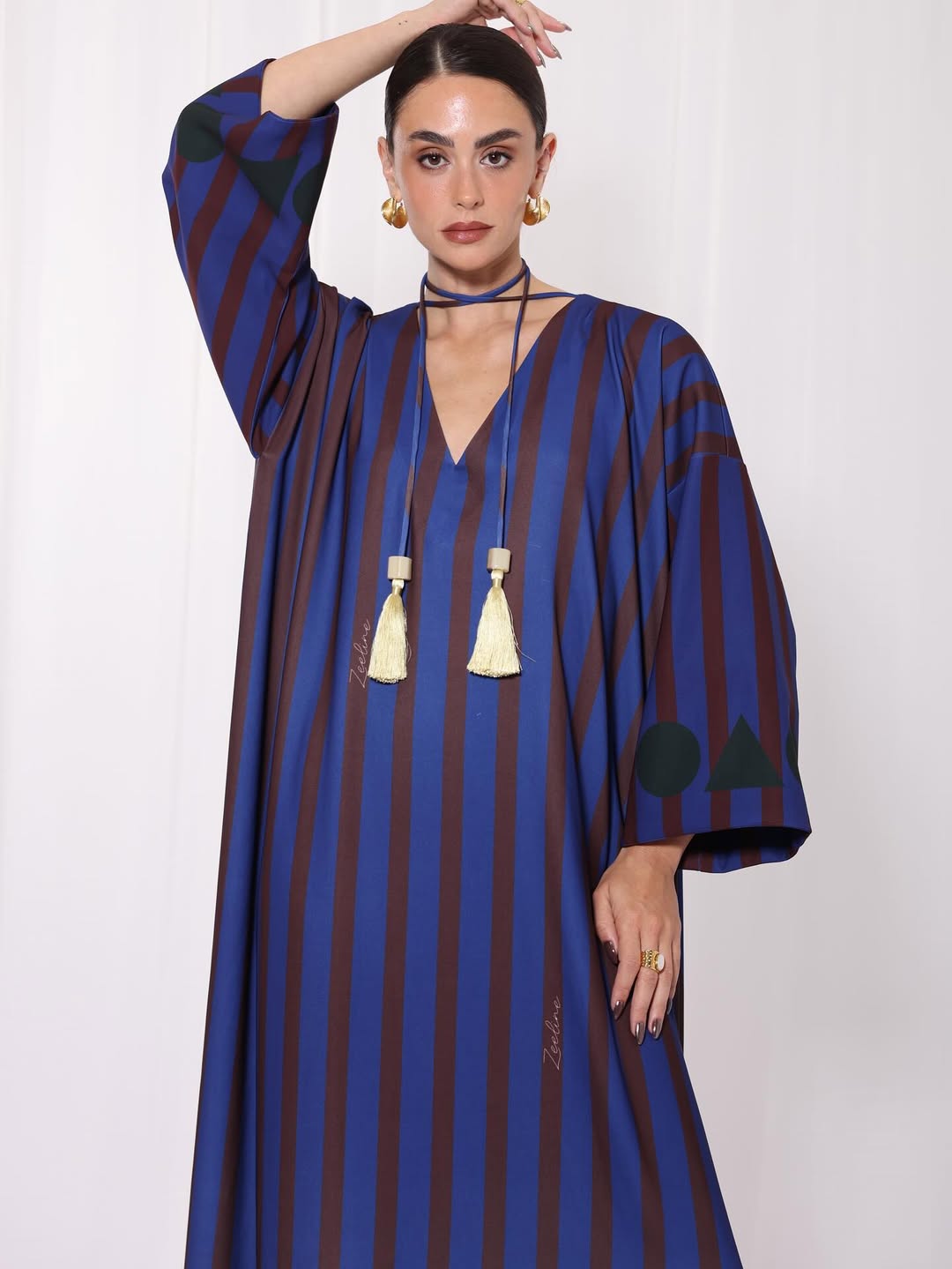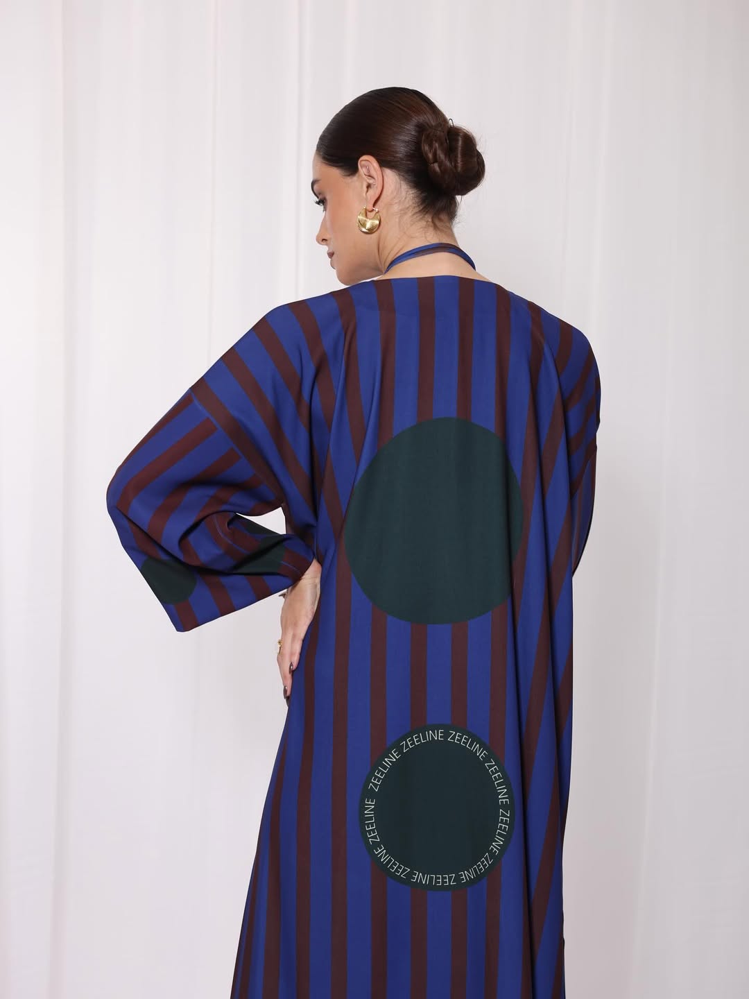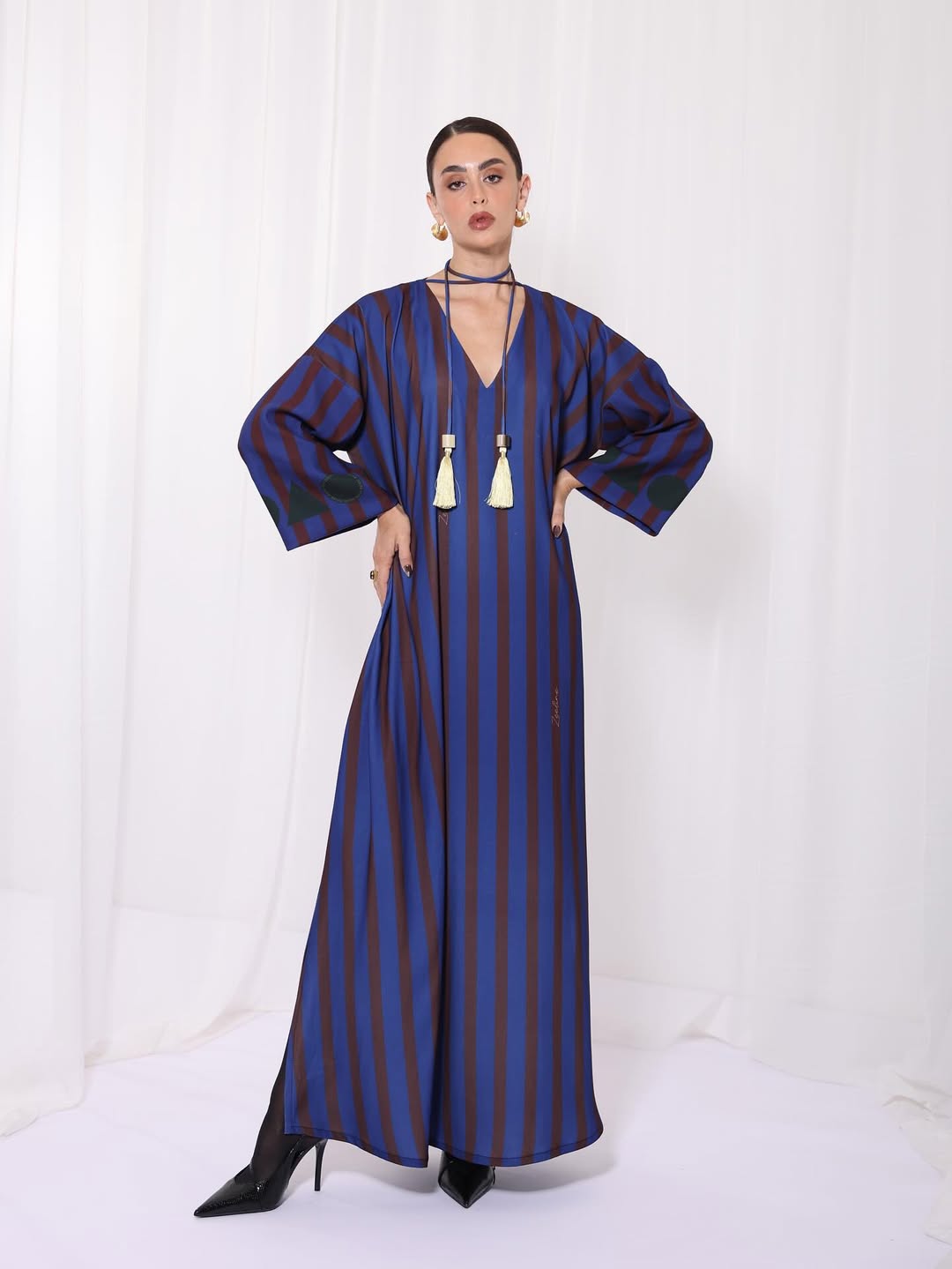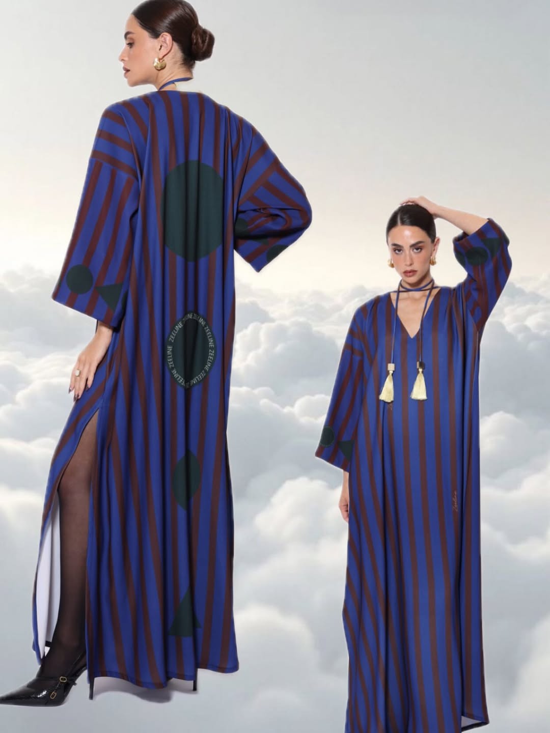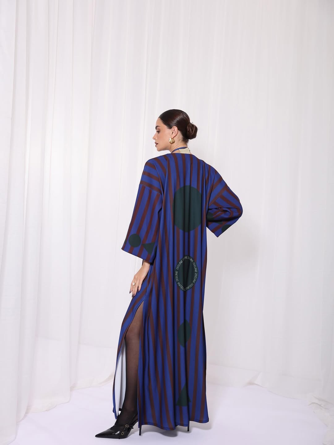 Crepe jalabiya with a custom print, elegant and distinctive design.