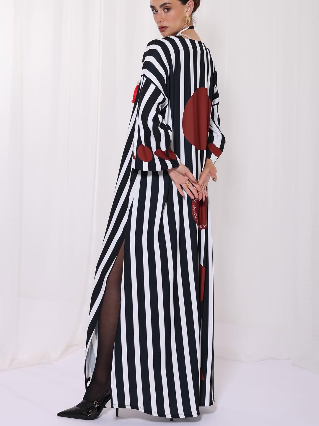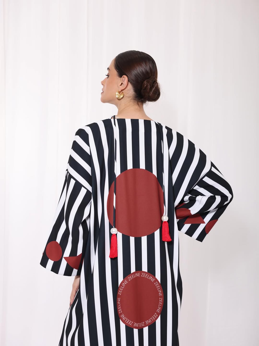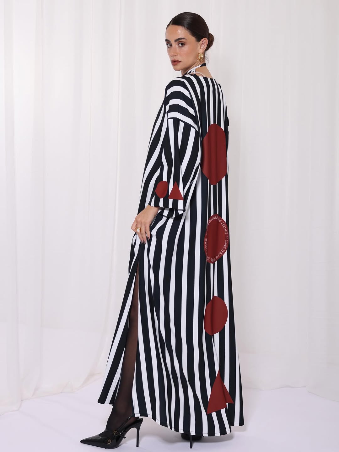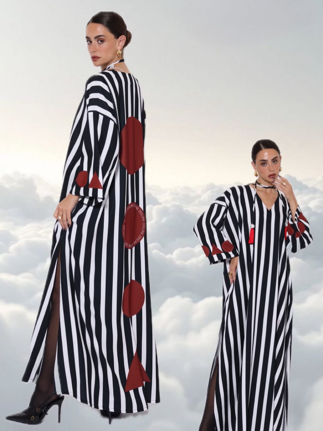 Crepe jalabiya with a custom print, elegant and distinctive design.